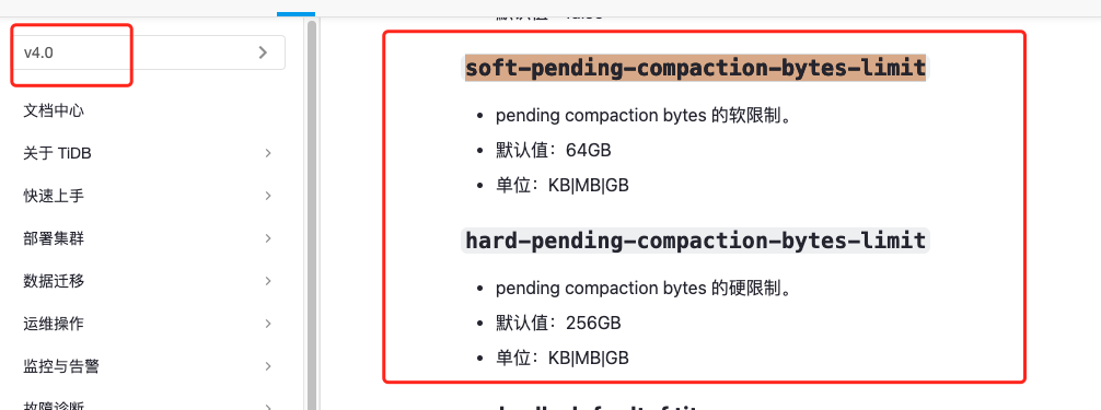 This topic has been translated from a Chinese forum by GPT and might contain errors.Original topic: 4.X找不到配置参数soft/hard-pending-compaction-bytes-limit