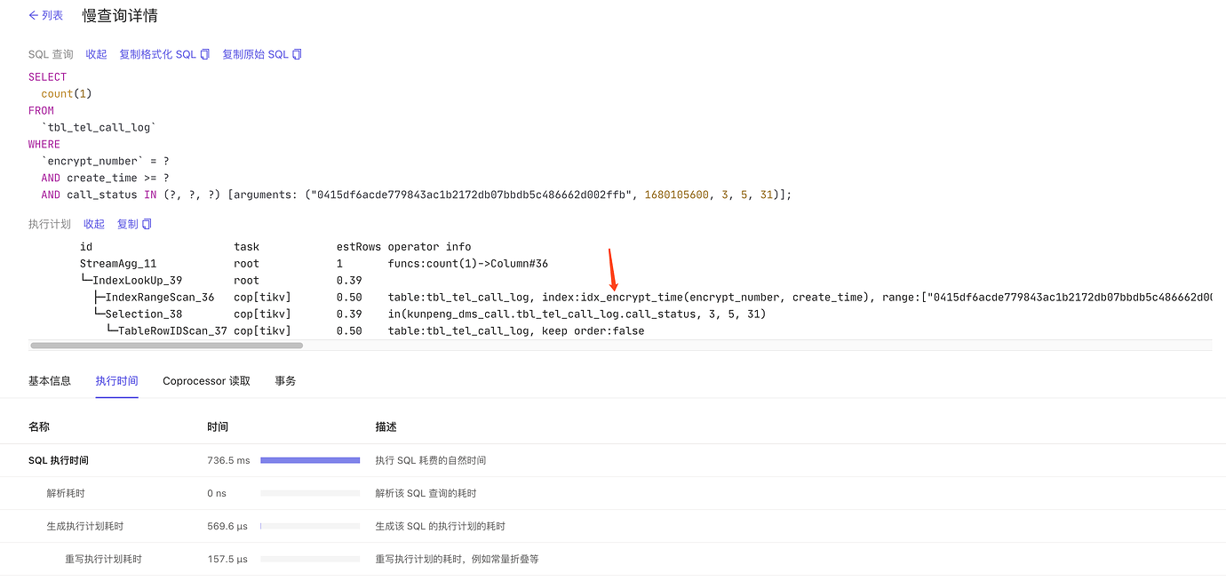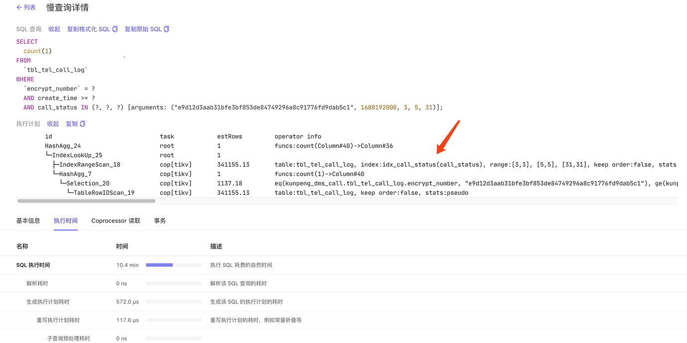 When the problem occurred, the execution plan viewed on the dashboard used the wrong index KEY idx_call_status (call_status)