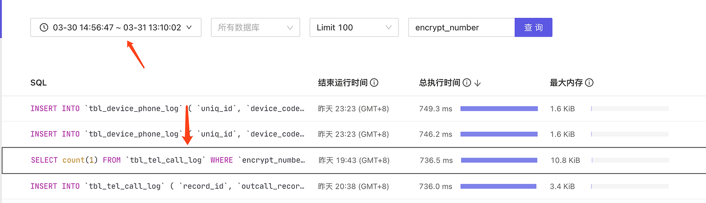 The slow SQL is as follows: