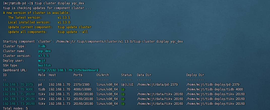 Do you mean that the original cluster version you used was 6.5.2, and then you generated tiup version 7.1.1 to manage the components by using tiup cluster deploy yqc v7.1.1 ./prod.yaml? Didn’t you upgrade it through tiup update cluster?