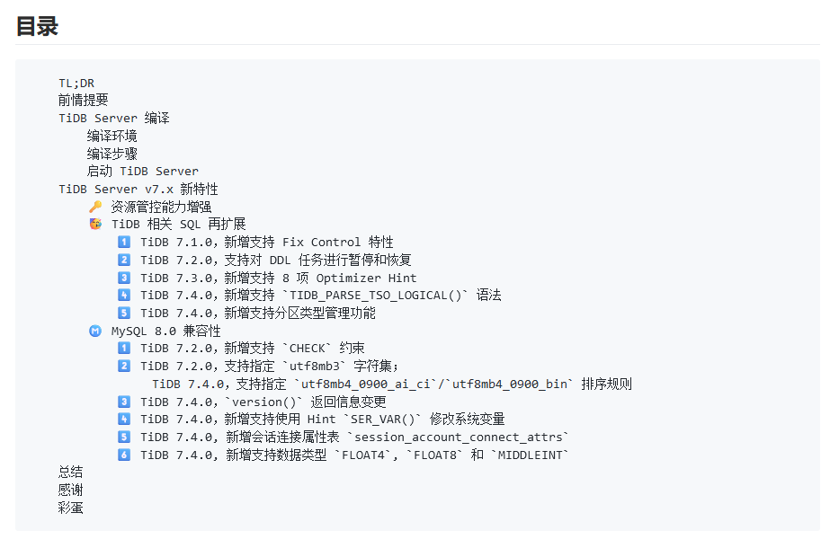 If you are interested in the new features of TiDB 7 but do not want to read the official documentation, it is highly recommended to read the following blog post. The article is somewhat long, over 5,000 words, but you can directly read the parts you are interested in based on the table of contents.