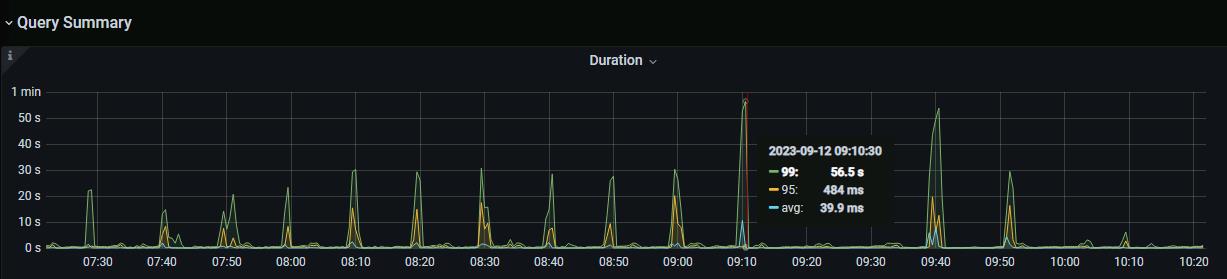 [Encountered Problem: Phenomenon and Impact] 9 o’clock is the critical point, summarizing from 9 o’clock the previous day to the current time. The data volume is very large in the morning, and writing to TiDB is very slow, causing it to get stuck. The data volume is 4 million records inserted in 10 minutes.