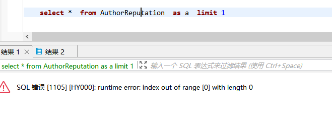 Original topic: select 单表报错 SQL 错误 [1105] [HY000]: runtime error: index out of range [0] with length 0