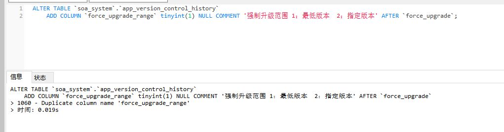 1060 - Duplicate column name ‘force_upgrade_range’